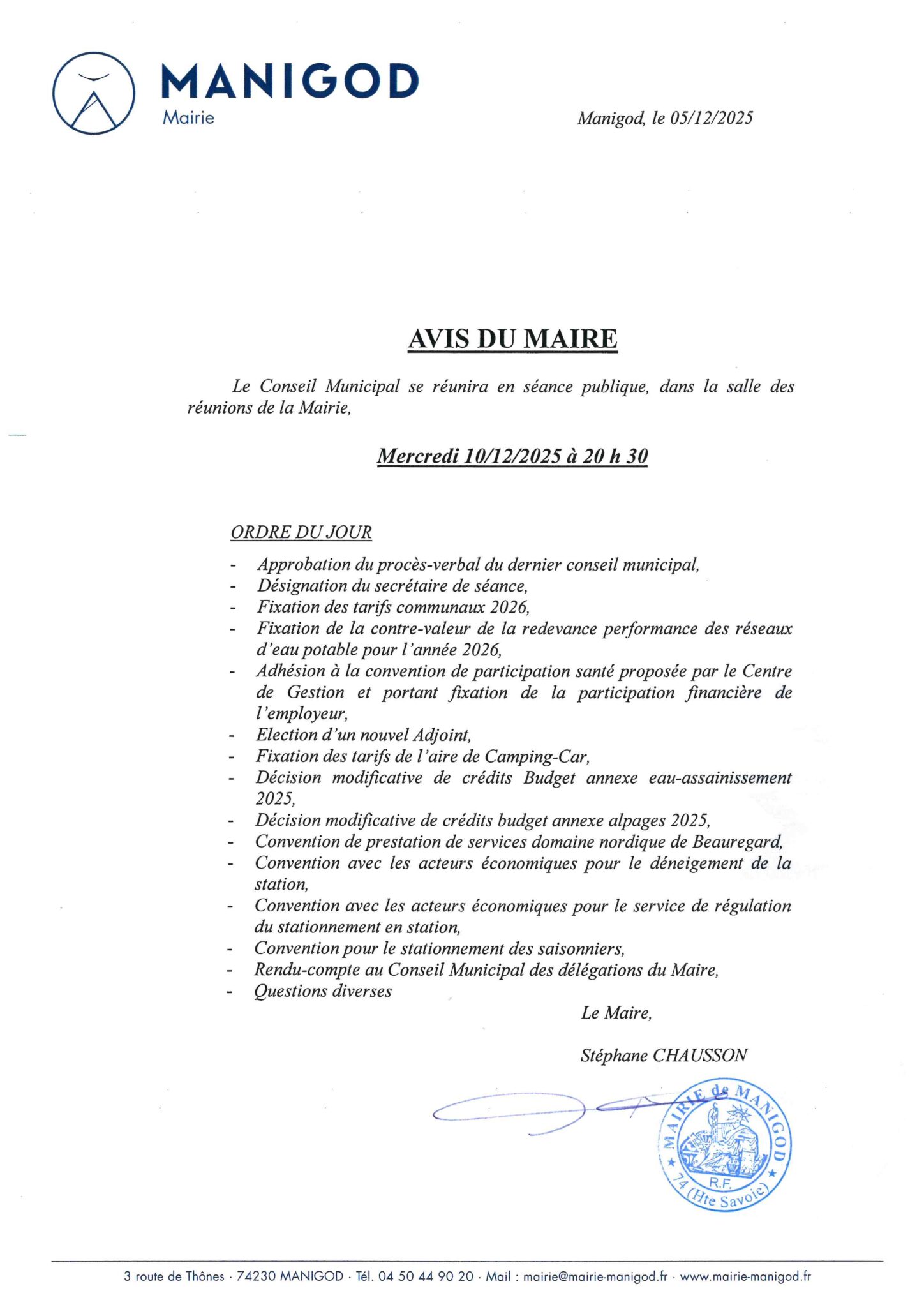 REUNION DU CONSEIL MUNICIPAL MERCREDI 10 DECEMBRE 2025